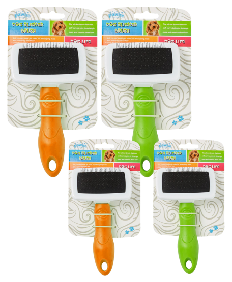 Ideaal als uw hond in de rui is. De zachte pinnen zijn ligt gebogen en zorgen voor een perfecte verwijdering van de oude vacht. De pinnen zijn bevestigd op een kussen die meebeweegt met de lichaamsbouw van hond. Hierdoor zal uw hond het borstelen heerlijk vinden. Het handvat is voorzien van ergonomische anti-slip (zacht rubber) zodat de borstel niet uit uw hand glijdt onder het borstelen.