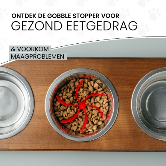 Dieser Gobble Stopper ist ideal, wenn der Hund oder die Katze zu schnell frisst. Dieser spiralförmige Einsatz macht es Hunden und Katzen schwerer, das Futter zu erreichen, sodass sie langsamer und weniger gierig fressen. Das Material fühlt sich fest und doch weich an, so dass es an der Nase nicht weh tut. Der Gobble Stopper hat an der Unterseite Saugnäpfe, mit denen er sicher am Boden des Futternapfes befestigt werden kann.
