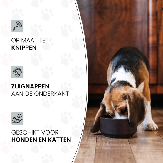 Legen Sie den Einsatz in den Futternapf und drücken Sie ihn nach unten, damit die Saugnäpfe am Boden haften. Die Laschen können bei Bedarf zurechtgeschnitten werden. Geben Sie dann das Futter in den Napf und lassen Sie Ihren Hund oder Ihre Katze aus dem Napf fressen.