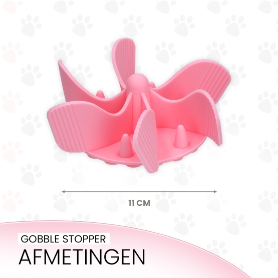 Dieser Gobble Stopper ist ideal, wenn der Hund oder die Katze zu schnell frisst. Dieser spiralförmige Einsatz macht es Hunden und Katzen schwerer, das Futter zu erreichen, sodass sie langsamer und weniger gierig fressen. Das Material fühlt sich fest und doch weich an, so dass es an der Nase nicht weh tut. Der Gobble Stopper hat an der Unterseite Saugnäpfe, mit denen er sicher am Boden des Futternapfes befestigt werden kann.