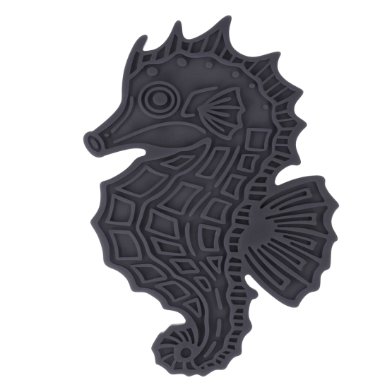 Deze likmat in de vorm van een zeepaard met diverse patronen maakt het oplikken van al het lekkers extra uitdagend! De hond of kat zal goed zijn best moeten doen om alles in de hoekjes op te likken. Dankzij de zuignapjes aan de onderzijde kun je de likmat goed bevestigen aan een gladde ondergrond, zodat deze niet verschuift terwijl de hond of kat ermee bezig is.