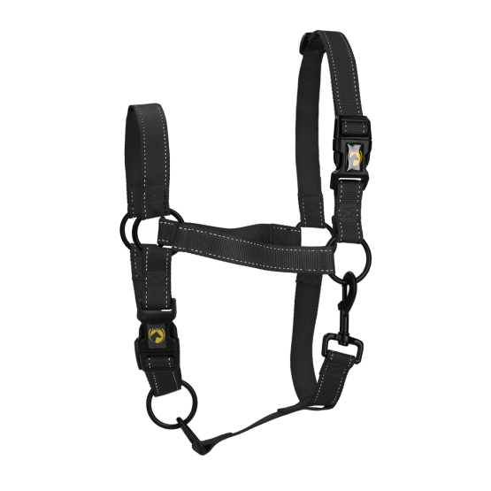 Kies voor veiligheid en gemak met de nieuwste halsters van Excellent Horse; de Premium halsters! Dezelfde uitstekende kwaliteit als de Essential halsters, maar met een extra uitrusting van reflecterende details. Zo is uw paard extra goed zichtbaar in het donker. Op de neusriem en het kopstuk zijn handige klikgesp-sluitingen en een gemakkelijk bedienbaar verstelsysteem verwerkt, waardoor het halster gemakkelijk om te doen en te verwijderen is. Ook kan de pasvorm van het halster perfect aan uw paard of pony aangepast worden. Het materiaal van het halster bestaat uit extra dicht gewoven nylon, waardoor het halster zacht, flexibel en slijtvast is.