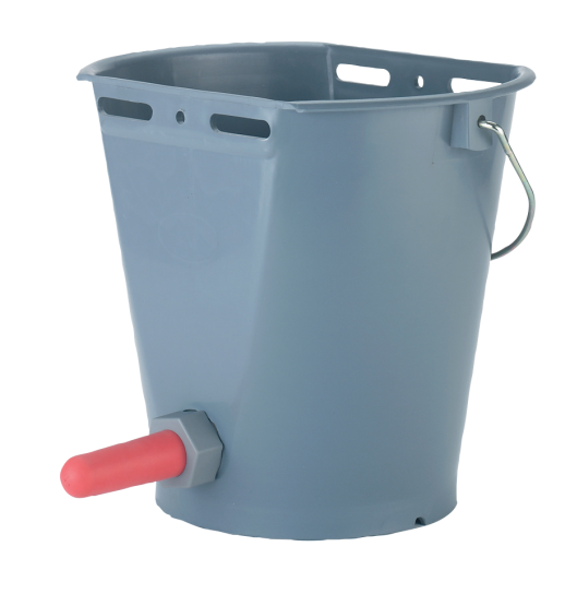 Bodem van de emmer is bol zodat alle melk opgezogen wordt.