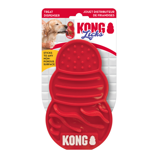 Deze KONG likmat bevat groeven, richels en nopjes, waar je snacks in kunt leggen of lekkere smeersel op kunt aanbrengen. Een likmat is een goede manier om verveling tegen te gaan en om je hond af te leiden. Gebruik deze likmat bijvoorbeeld tijdens het wassen of nagels knippen, om je hond rustiger te houden. Dankzij de 2 zuignappen aan de achterkant kun je de likmat op vrijwel alle gladde oppervlakken bevestigen.