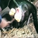Het apparaat zal nu vanzelf op de juiste plaats glijden, zowel bij liggende als bij staande dieren.