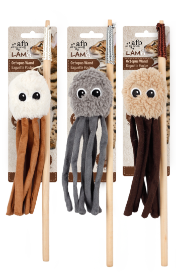 Hengel met daaraan een grappige octopus. De tentakels van de octopus zijn voorzien van krakend plastic met daaromheen onweerstaanbaar fleece.