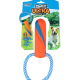 Deze sterke Chuckit Ultra Bumper Tug is gemaakt van hetzelfde oersterke en duurzame materiaal als de populaire Chuckit Ultra Ball en tilt het trek- en apporteerspel naar een nieuw niveau! De Bumper Tug is namelijk op twee manieren te gebruiken. Zo kunt u het touw opbergen in de Bumper en kunt u ermee apporteren; zelfs in het water, want de Ultra Bumper Tug drijft namelijk. Voor een actief rondje tug-of-war met uw hond haalt u gemakkelijk het touw uit de daarvoor bestemde sleuven en heeft u een oersterk speeltje!