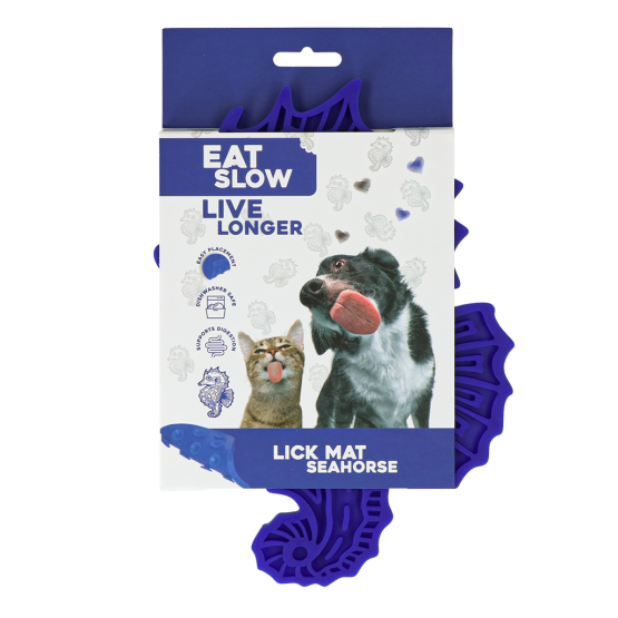 Deze likmat in de vorm van een zeepaard met diverse patronen maakt het oplikken van al het lekkers extra uitdagend! De hond of kat zal goed zijn best moeten doen om alles in de hoekjes op te likken. Dankzij de zuignapjes aan de onderzijde kun je de likmat goed bevestigen aan een gladde ondergrond, zodat deze niet verschuift terwijl de hond of kat ermee bezig is.