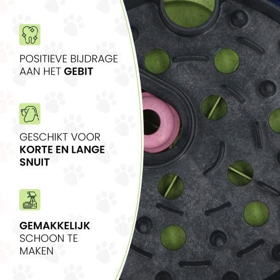 The Eat Slow Live Longer Puzzle is a fun way to keep dogs occupied and rewarded at the same time. By hiding kibble or snacks in the puzzle, dogs will have to do their best to find all the treats by sliding, twisting and opening parts. This provides mental and physical challenge, and it can help reduce boredom, anxiety and destructive behavior. In addition, it can strengthen the bond between owner and dog when they interact with the puzzle together. The feeding puzzle can also be used as an anti-shake feeding bowl. The puzzle has non-slip feet and is dishwasher safe.