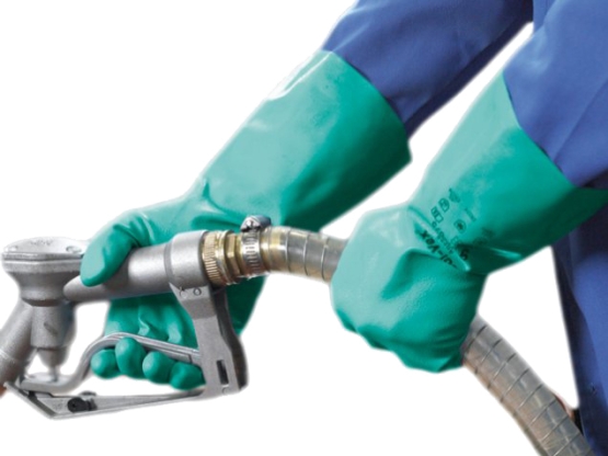 Soepele nitril handschoen, biedt bescherming tegen chemicaliën.