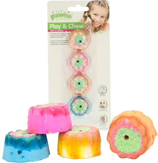 De taartjes zijn niet alleen super leuk, maar trimmen ook nog eens de tanden van je knaagdier. Geschikt voor konijnen, cavia’s, hamsters en andere kleine knaagdieren.