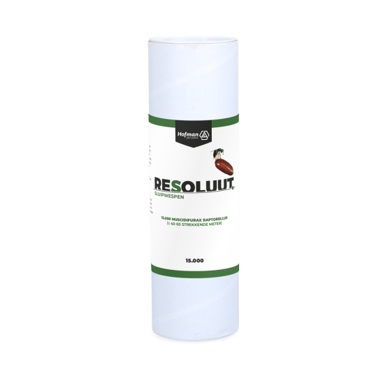Resoluut Sluipwespen zijn van de soort Muscidifurax raptorellus. Deze sluipwespen zijn natuurlijke vijanden van verschillende soorten plaagvliegen. De sluipwespen leggen hun eitjes in de poppen van deze plaagvliegen. De eitjes komen uit als maden en eten vervolgens de vliegenpop van binnenuit op. Hiermee wordt de levenscyclus van de plaagvlieg onderbroken en na 3 tot 4 weken komen er nieuwe sluipwespen uit de pop. De sluipwespen zijn slechts 2-3 mm groot en zijn niet tot last voor mens en dier.