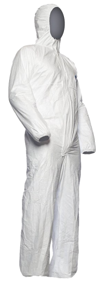 Deze disposable overall van sterk Tyvek biedt een goede combinatie op gebied van bescherming, duurzaamheid en comfort. Beschermt tegen vloeistofnevels van chemicaliën op waterbasis en vaste deeltjes. Beperkte bescherming tegen vloeibare chemicaliën. Elastieken in de capuchon en de manchetten bij de polsen/enkels zorgen voor een goede afsluiting. Voorzien van rits met overslag voor optimale bescherming.