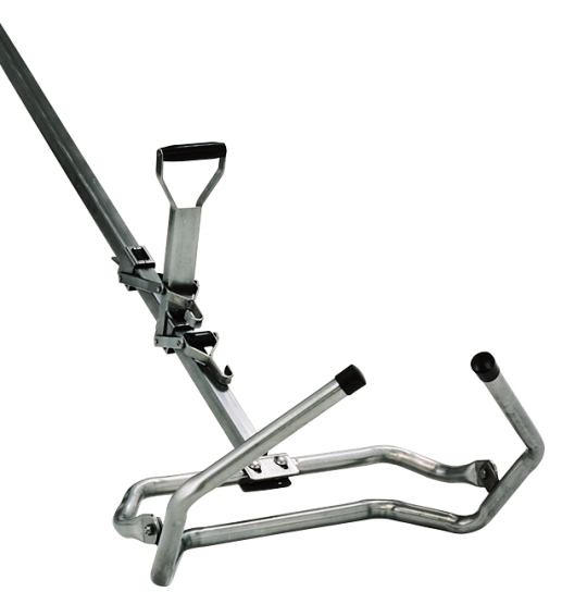 Men plaatst de steun tegen de achterzijde van het dier met de open kant aan de rugzijde, zodanig dat de zitbeenknobbels door de steun worden omvat.
