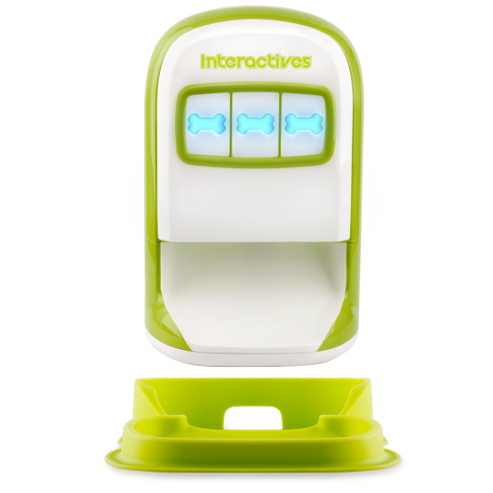 Deze gokautomaat strooit met beloningen voor uw hond wanneer er op de knop gedrukt wordt.