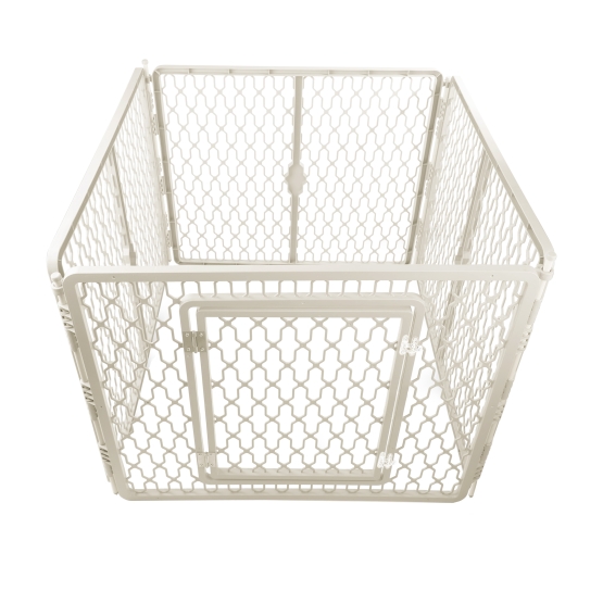Deze hondenren voor binnen en buiten is perfect om je hond of puppy veilig in te laten spelen of slapen. Ook kun je de ren gebruiken als je de hond even alleen thuis moet laten. De hondenren is eenvoudig op te zetten en weer op te ruimen, doordat de panelen al gedeeltelijk met elkaar verbonden zijn. Dankzij de bijgeleverde zuignappen blijft de ren binnen op zijn plek staan en ontstaan er geen krassen op de vloer. Wil je de ren buiten neerzetten? Met de bijgeleverde palen zet je de ren vast in de grond.