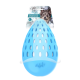 Binnenin zit een materiaal dat het geluid van een plastic flesje nabootst, zodra ermee gespeeld wordt.
