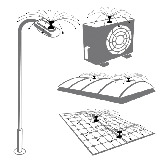 Effectief en hoogwaardig weringssysteem tegen vogels zoals o.a. duiven, meeuwen, spreeuwen, kraaien, merels enz. Doordat de draden roteren door de wind wordt voorkomen dat vogels landen of gaan nestelen op oppervlakken.