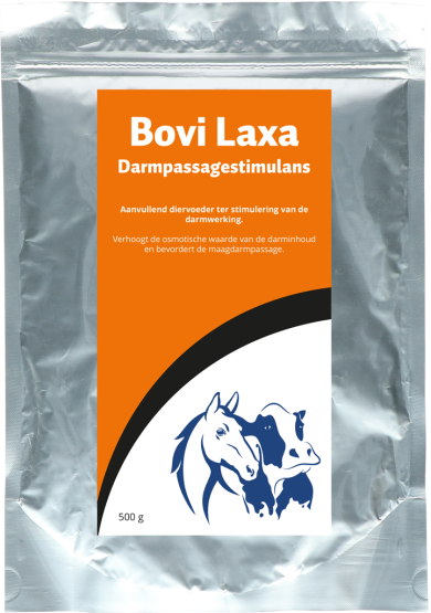 Bovi Laxi is samengesteld uit natriumsulfaat, een bitter smakend zout, en kalmoeswortel, dat deze bittere smaak verhult. Natriumsulfaat wordt niet door de darmen opgenomen en daardoor wordt de osmotische waarde in de darmen verhoogd. Dit zorgt ervoor dat de opname van vocht uit de darmen verlaagd wordt en in plaats daarvan vocht door de darmen wordt aangetrokken. Zorg daarom dat het dier altijd voldoende vers drinkwater ter beschikking heeft. Door het osmotische proces neemt het volume in de darmen toe, wat voor het dier een prikkel is om te ontlasten. Faecesvorming zal na circa 24 uur op gang beginnen te komen.