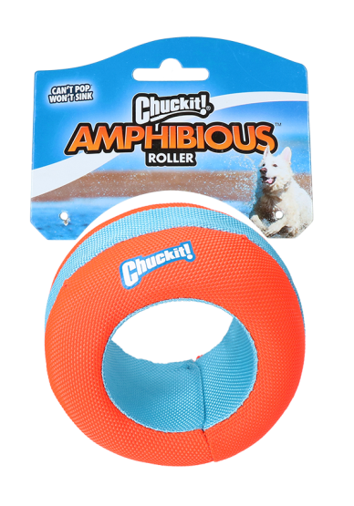 Er is een nieuw speeltje in hondenland! Deze gave Amphibious Roller van Chuckit creëert, zoals de naam al verklapt, een nieuwe manier van spelen in het water en op het land! Dankzij de lichtgewichte kern van schuim is de Roller onzinkbaar en rolt het zelfs op water, wat het apporteren voor waterliefhebbende honden extra leuk maakt. De fel oranje kleur zorgt voor herkenning in elk landschap en dankzij de vorm en de afmetingen kan uw hond de Roller goed in de bek pakken.