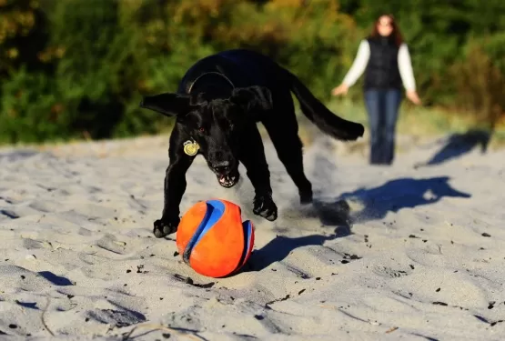 De Chuckit Kick Fetch bal maakt het mogelijk om samen met uw hond te voetballen! Deze gave bal is leverbaar in twee afmetingen en is gemakkelijk op te pakken door de hond, dankzij de rubberen inkepingen. Met een binnenkant van schuimrubber, dubbele naden en een gestructureerde canvas-buitenkant blijft de bal drijven én is het geschikt voor allerlei wilde spelletjes, ook in het water. De felle kleuren zorgen er bovendien voor dat de Chuckit Kick Fetch bal overal gemakkelijk te spotten is, zelfs in hoog gras!