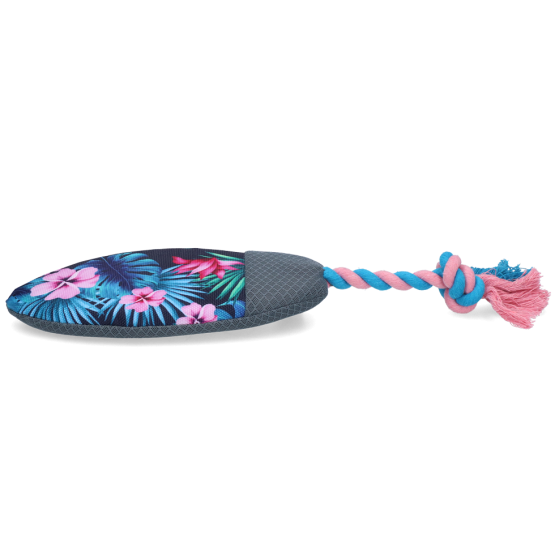 Een surfplank speciaal voor je hond; Surf’s Up is het nieuwe favoriete speeltje van de hond deze zomer! Als een echte surfplank blijft dit speeltje drijven op water en kan de hond er heerlijk mee in het water spelen. Daarnaast neemt het water op, dat vrij komt in de bek zodra de hond erin bijt. Zo helpt het uitdroging voorkomen. Het speelplezier wordt compleet dankzij het leuke kraakmateriaal, het piepje en het flosstouw, dat helpt met het reinigen van de tanden.