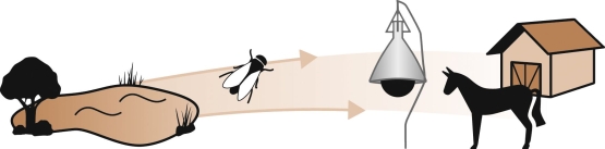 Ze landt op de bal, steekt, en vliegt daarna teleurgesteld omhoog (naar het licht). Ze belandt dan via de fuik in het opvangreservoir.