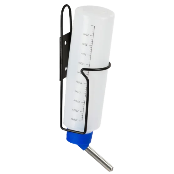 Duurzame flexibele doorzichtige kunststofdrinkfles met een metalen houder die makkelijk te bevestigen is. Het drinkgedeelte beschikt over de dubbele bal-technologie en is geschikt voor alle knaagdieren en bijbehorende hokken. U kunt makkelijk zien hoeveel water er nog in de drinkfles zit omdat deze doorzichtig is.