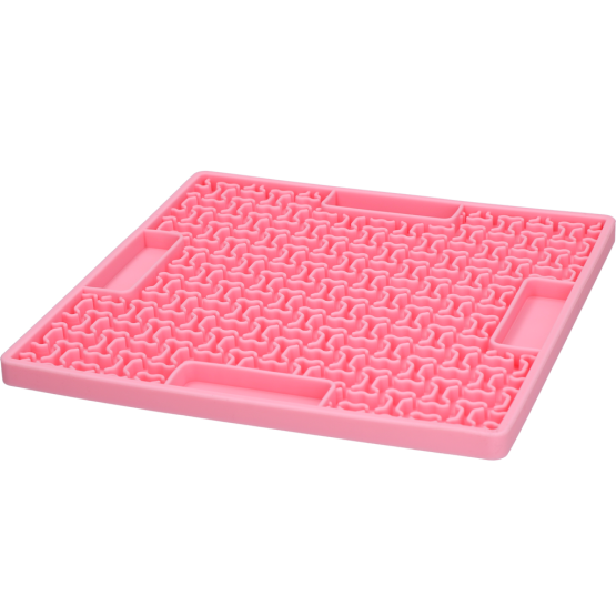 Deze likmat met een botjespatroon maakt het oplikken van al het lekkers extra uitdagend! De hond of kat zal goed zijn best moeten doen om alles in de hoekjes op te likken. Dankzij de zuignapjes aan de onderzijde kun je de likmat goed bevestigen aan een gladde ondergrond, zodat deze niet verschuift terwijl de hond of kat ermee bezig is.