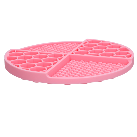 Deze ronde likmat met 2 patronen (nopjes en honingraat) en diepe vakjes maakt het oplikken van al het lekkers extra uitdagend! De hond of kat zal goed zijn best moeten doen om alles tussen de nopjes en in de hoekjes op te likken. Dankzij de zuignapjes aan de onderzijde kun je de likmat goed bevestigen aan een gladde ondergrond, zodat deze niet verschuift terwijl de hond of kat ermee bezig is.