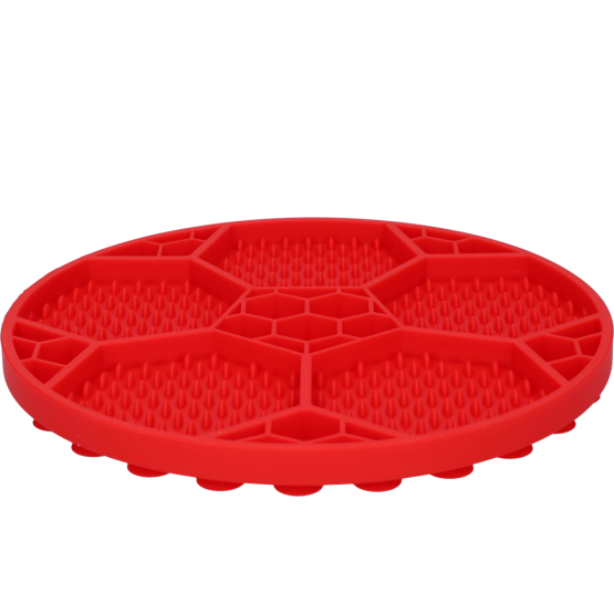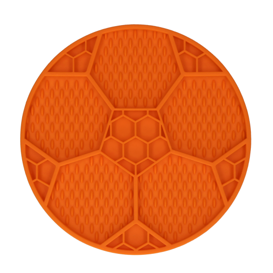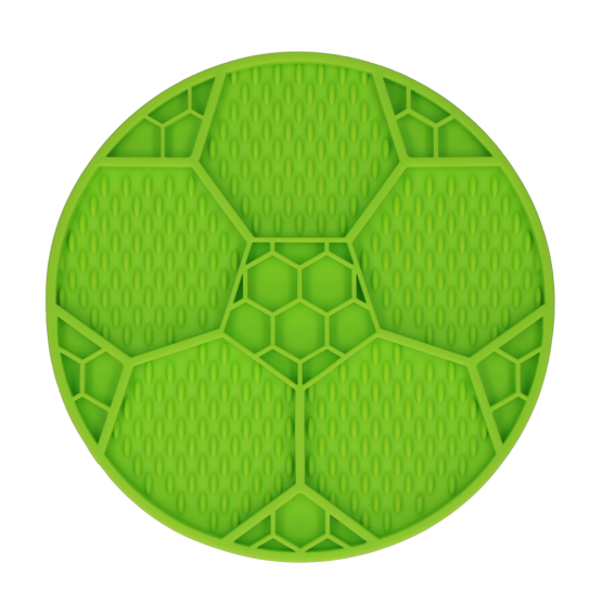 Deze ronde likmat met het patroon van een voetba; maakt het oplikken van al het lekkers extra uitdagend! De hond of kat zal goed zijn best moeten doen om alles in de hoekjes op te likken. Dankzij de zuignapjes aan de onderzijde kun je de likmat goed bevestigen aan een gladde ondergrond, zodat deze niet verschuift terwijl de hond of kat ermee bezig is.