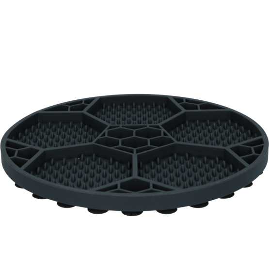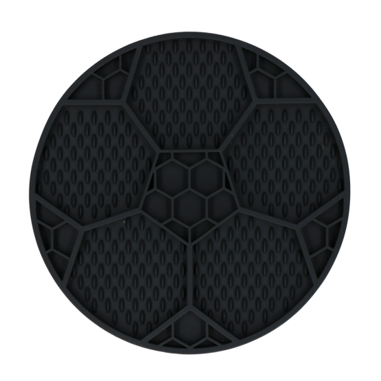 Deze ronde likmat met het patroon van een voetba; maakt het oplikken van al het lekkers extra uitdagend! De hond of kat zal goed zijn best moeten doen om alles in de hoekjes op te likken. Dankzij de zuignapjes aan de onderzijde kun je de likmat goed bevestigen aan een gladde ondergrond, zodat deze niet verschuift terwijl de hond of kat ermee bezig is.