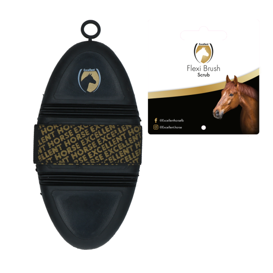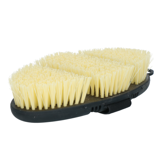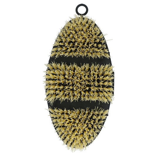 Door de flexibele bovenzijde ligt de borstel comfortabel in de hand en vormt deze zich eenvoudig naar het lichaam van het paard. Door de flexibele bovenzijde ligt de borstel comfortabel in de hand en vormt deze zich eenvoudig naar het lichaam van het paard.