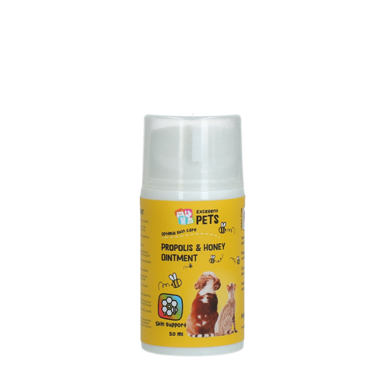 Excellent Pets Propolis & Honey Ointment is een verzorgende zalf voor honden, katten, konijnen en knaagdieren. De formule op basis van bijenpropolis en -honing ondersteunt het herstellend vermogen van de huid.