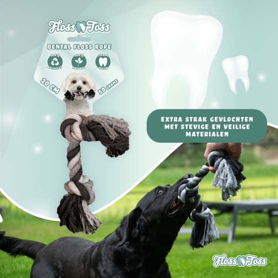 Kortom een het flossen met een flosstouw is onmisbaar voor iedere hond!