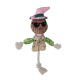 Vrolijke vogelverschrikker met knispermateriaal en stevig touw, gemaakt van duurzame en gerecyclede materialen.