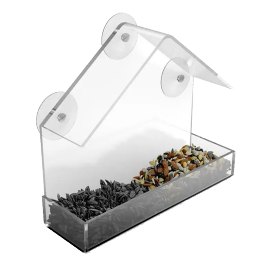 Dit kunststof vogelvoerhuisje is dankzij het compacte formaat erg geschikt voor kleine, wilde vogels. Het voerhuisje kan door maximaal 3 vogels tegelijkertijd gebruikt worden. Door het transparante materiaal kun je de vogels goed observeren en controleren of er nog voer in het huisje zit. Bevestig het vogelhuisje eenvoudig op een gladde ondergrond met de zuignappen.