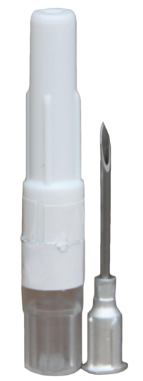 - Naald zit in de aluminium conus geponst