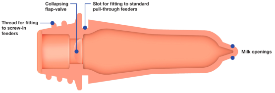 De ideale speen voor in de speenemmer, zoals de dubbelzijdige kalveremmer. Makkelijk toe te passen zonder koppeling.