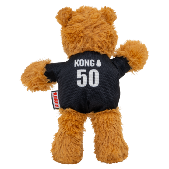De KONG Wild Knots Sport Bear WK Editie combineert een zachte, knuffelbare buitenkant met een stevig geknoopt touwskelet binnenin. Dit maakt het speeltje perfect voor trek-, gooi- en schudspelletjes. De ingebouwde pieper geeft extra speelprikkels, terwijl de beperkte vulling losse pluche vermindert bij intensief gebruik. Het voetbalshirt geeft de beer een speelse, herkenbare uitstraling en maakt het speeltje perfect voor de WK-sfeer.