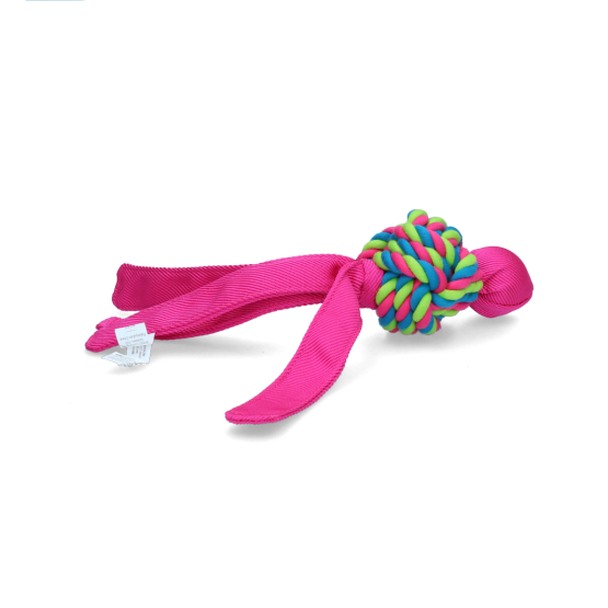 Uniek design waar honden dol op zijn! Het speelgoed is makkelijk weg te gooien dankzij de lange staarten. De robuust geweven katoenen touwen reinigen het gebit en de pieper in de bal zorgt voor extra speelplezier.