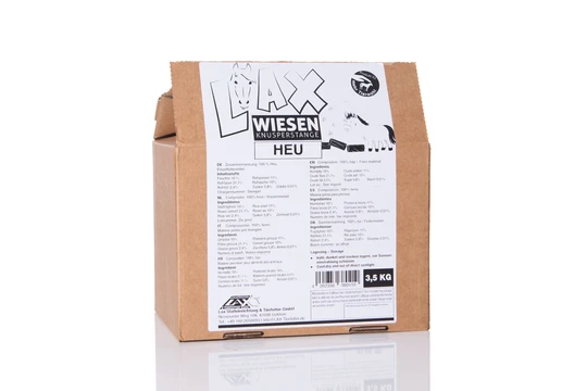 De Lax producten zijn de gezonde snack voor paarden. Ze combineren natuurlijke ingrediënten met een unieke smaak en zorgvuldige verwerking en bieden zo de beste voorwaarden voor hoogwaardig voer. De heerlijke krokante sticks hebben de beste eigenschappen en verwennen paarden met belangrijke voedingsstoffen. De enkelvoudige voeding heeft een laag suikergehalte en is de ideale aanvulling voor een evenwichtige voeding. Het paardenvoer is gemaakt van luzerne en weidehooi van gecontroleerde teelt en is graan- en melassevrij. Vers van de wei worden de ingrediënten direct verwerkt en geperst tot een lange, ronde vorm. De gezonde ruwvoersnack is zeer uitgebreid en zorgt voor langdurig knabbelplezier.