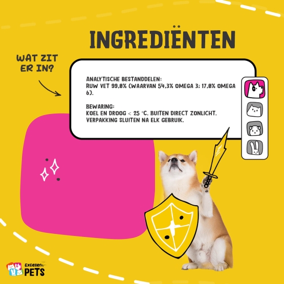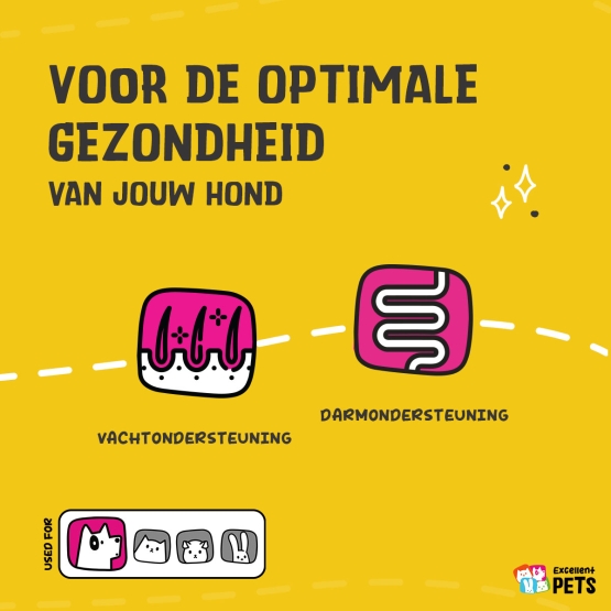 Ondersteuning van de spijsvertering en huid, de vacht van de hond gaat prachtig stralen.
