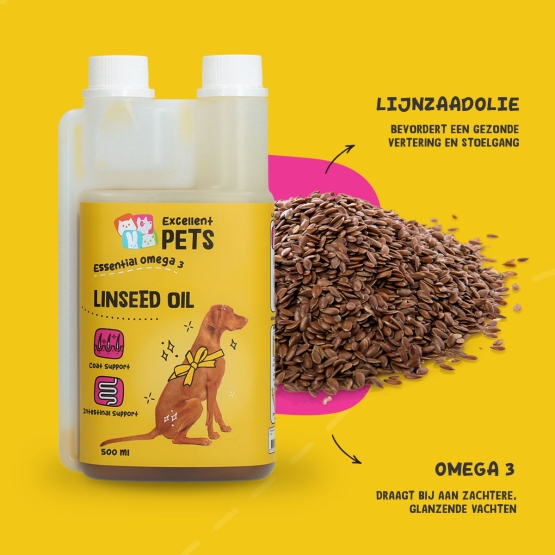 Linseed Oil ter ondersteuning van het spijsverteringstelsel, darmwerking, huid- en vachtverzorging.Lijnzaadolie koudgeperst bevat een hoog gehalte aan omega-3 vetzuren.
