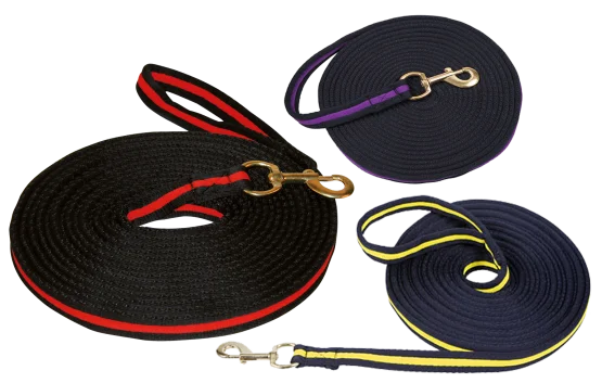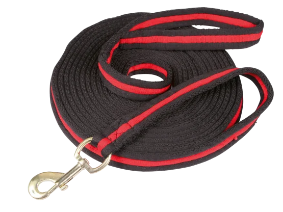 Deze longeerlijn is gemaakt van extra zachte kwaliteit (soft grip) en ligt hierdoor zeer comfortabel in de hand. Aan het einde is de lijn voorzien van een roterende karabijnhaak.