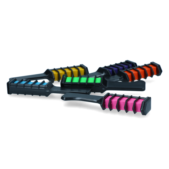 De kleurtjes zitten in een kammetje, waardoor je ze makkelijk aanbrengt.
