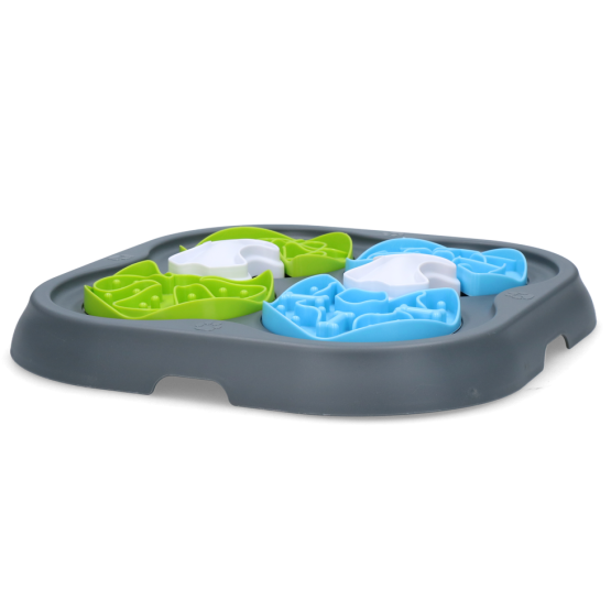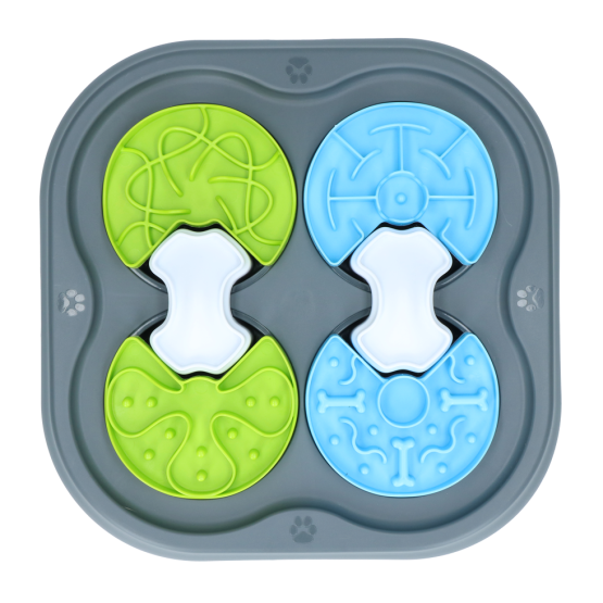 Je hond zal proberen om de vakjes van de Pawise Dog Puzzle te bewegen. Met een beetje oefenen en met behulp van zijn neus, zal je hond erin slagen de vormpjes te verschuiven en zo zijn beloning te krijgen. Vul de vakjes met wat brokjes of de favoriete traktatie van je hond.