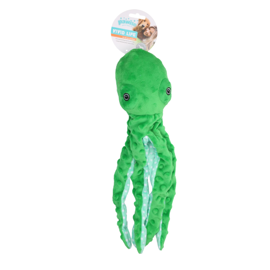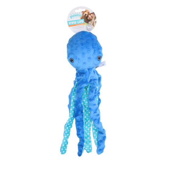 Deze leuke octopus is een fantastisch speelkameraadje voor de hond! Gemaakt van uiterst knuffelbaar zacht pluche, dus ook als knuffel zeer aantrekkelijk. De hond kan lekker kauwen op de grote kop van de octopus. Honden vinden het prettig dat een speeltje mondvullend is. Verdere stimulans om te spelen zijn de wapperende tentakels en de pieper! Kauwen en ravotten, wat een feest! De hond zal gek op deze octopus zijn!