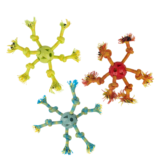 De Pawise Play-N-Tug Multi Rope Ball is een bal waar meerdere touwen doorheen lopen. Deze bal is perfect om mee te apporteren, om trekspelletjes te doen of om op te kauwen. Dit veelzijdige speeltje zorgt voor urenlang plezier en kan zowel binnen als buiten gebruikt worden.