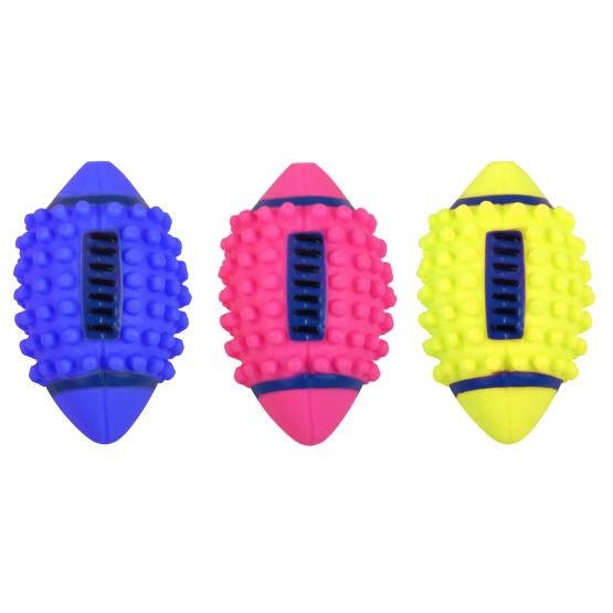 De Vinyl Spiky Football van Pawise is gemaakt van duurzaam vinyl en rolt, door de ovalen vorm, alle kanten op. De bobbels op de football masseren het tandvlees, terwijl uw hond eindeloos met het speeltje speelt. Het leuke piepje verhoogt bovendien het speelplezier met de Vinyl Spiky Football!